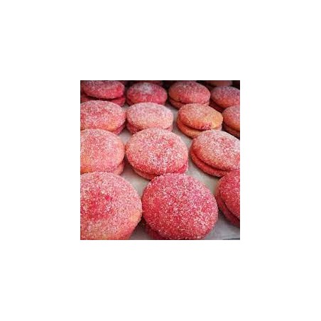 paste rosse, ingredienti: farina 00, zucchero, uova intere, buccia di limone, lievito, alchermes, confettura di pesche o albicocca