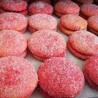 le paste rosse sono un delizioso dolce tipico della tradizione sarda, in particolare della zona della baronia. dalla forma circolare, realizzate con due dischi di sofficissimo pan di spagna che vengono uniti tra loro con della marmellata di albicocche o pesche. il colore rosso viene dato dall'alchermes con cui vengono bagnate e subito spolverate con lo zucchero che ne da la catteristica croccantezza