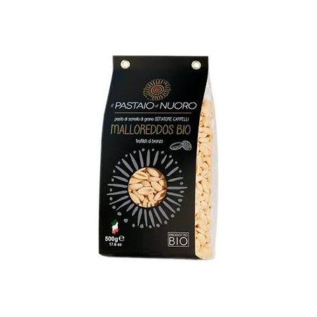 i malloreddos sono senza dubbio la pasta sarda più popolare. con la loro forma caratteristica di conchiglie rigate hanno portato un pezzo di sardegna in ogni angolo del mondo. questa particolare produzione di malloreddos è caratterizzata da una trafilatura al bronzo e dall'utilizzo di farina tutta italiana, la senatore cappelli, poco conosciuta, ma ricca di proprietà benefiche e valori nutrizionali che hanno reso questa scelta perfetta per la produzione dei malloreddos. è un grano di altissima qualità, inoltre molto duro e questo fa si che si mantenga una cottura al dente. dal punto di vista tradizionale si misurano una quantità superiore di vitamine, minerali, lipidi e aminoacidi rispetto al frumento comune. questo garantisce anche una digeribilità maggiore. Confezionata con prodotti coltivati e lavorati in Italia certificati bio.